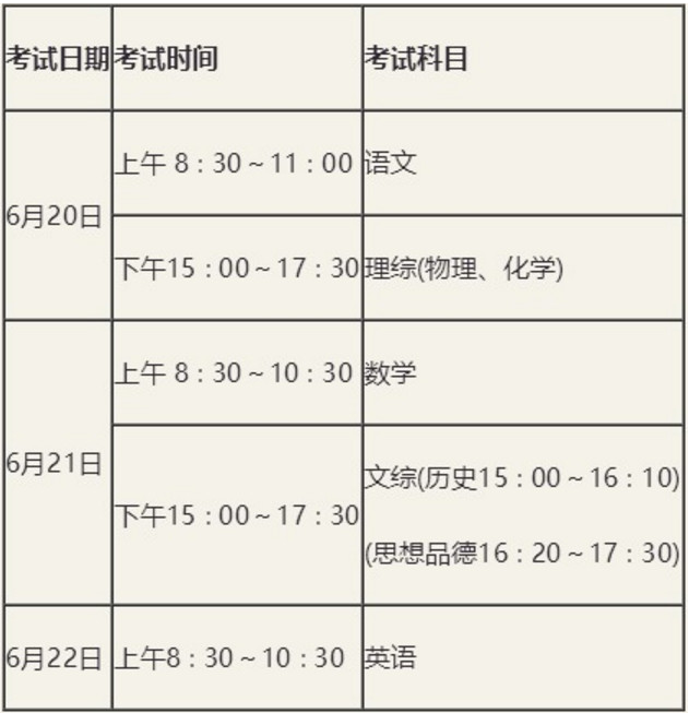 朔州中考时间2022年具体时间安排(6月20日-22日)
