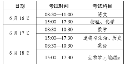 2025年云南玉溪中考时间及科目:6月16日至20日