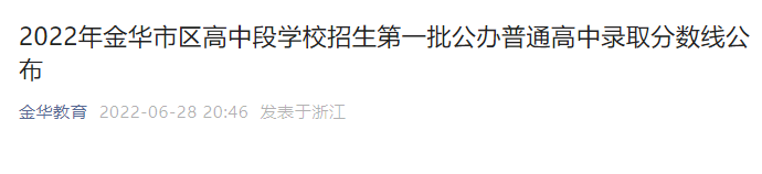 2022年浙江金华市区高中段学校招生第一批公办录取分数线公布