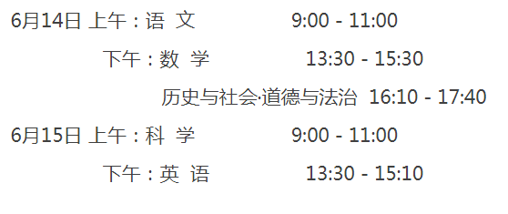浙江金华中考时间2023年时间表(6月14日-15日)