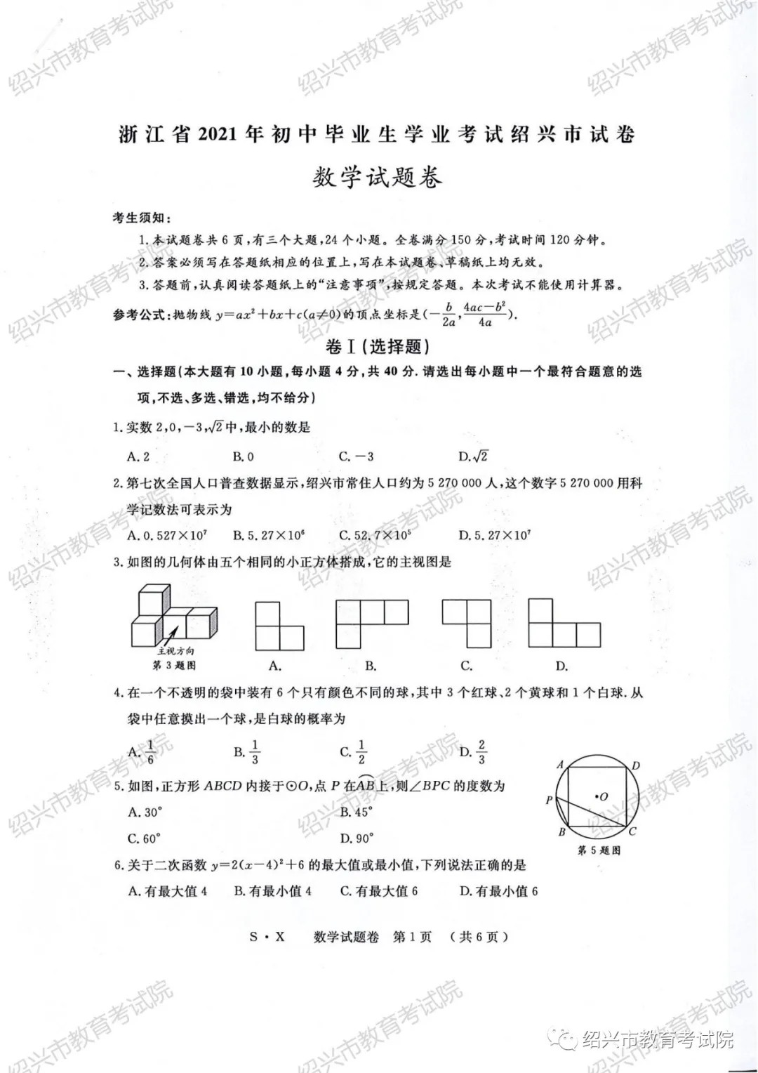2021年浙江绍兴市中考数学试题及答案由中考网发布,主要内容:2021年浙江绍兴市中考数学试题及答案,欢迎浏览,仅供参考。2021-06-17