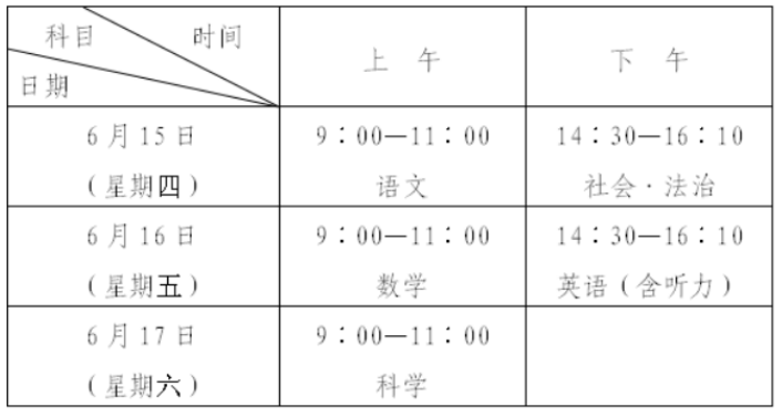 浙江绍兴中考时间2025年时间表(6月21日-22日)